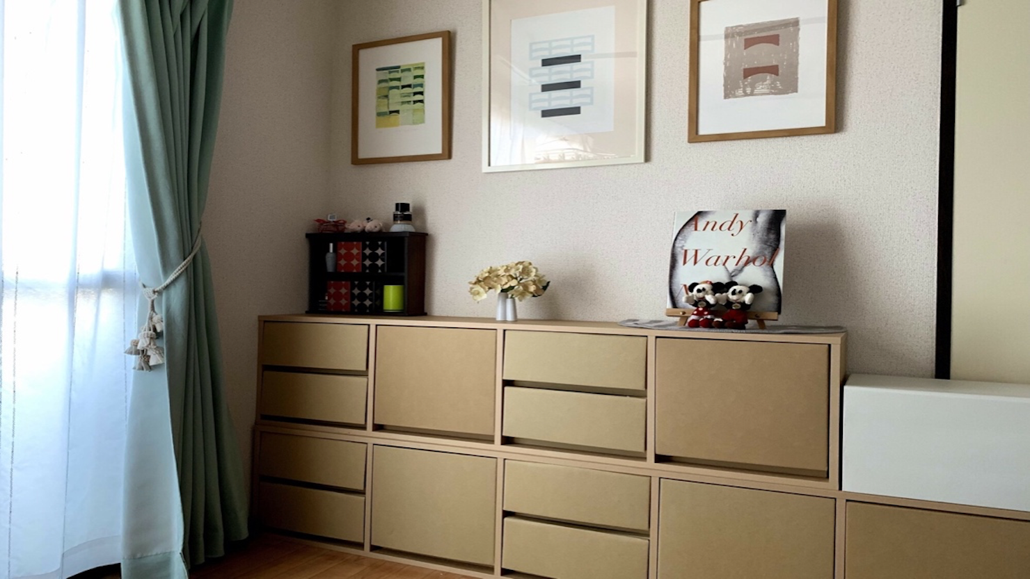 無機質に見えるけれど温かみのあるダンボール仕様がいい感じだと思っています。