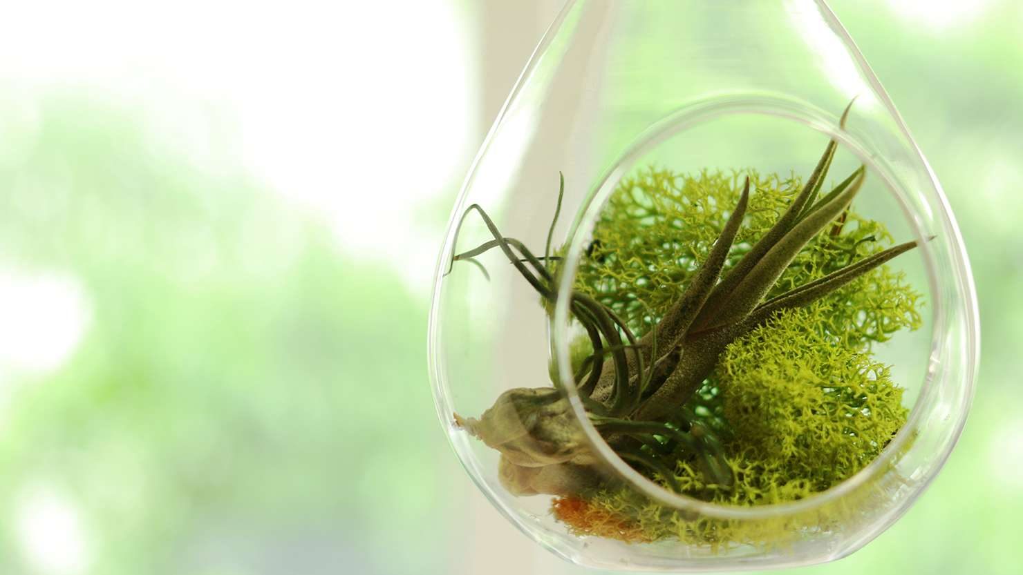 土を必要としないので特別な場所を必要とせず、気軽に置いて育てることができます。 水やりは週に2,3回霧吹きでスプレーして、水をたっぷり与えればOKです。