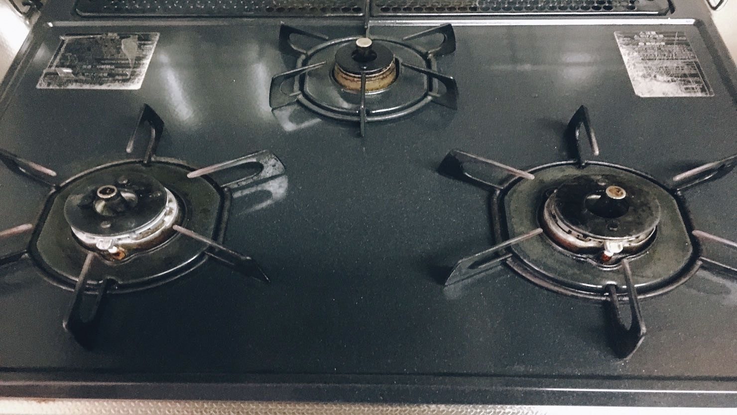 新しい住居は、三口コンロキッチン付きの物件でした。
