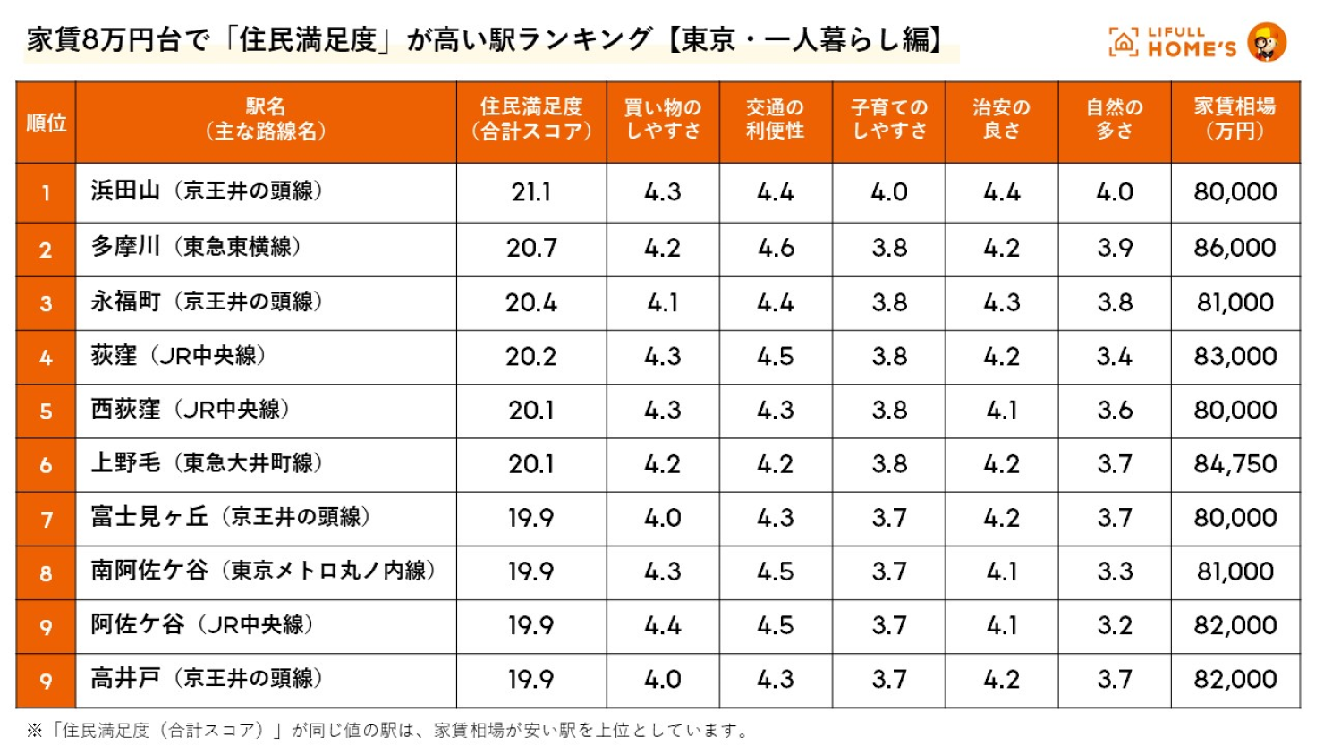 家賃8万円台で「住民満足度」が高い駅ランキング【東京一人暮らし編】