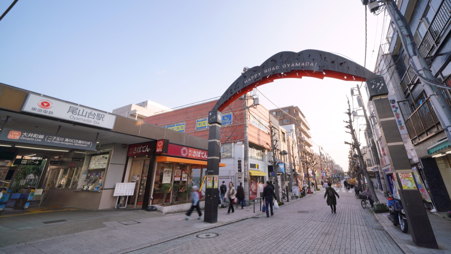 街は閑静な住宅街が広がり、比較的落ち着いています。付近に多摩川が流れているほか、公園も多くファミリー層にも人気のエリア。駅周辺にはスーパーやドラッグストアが点在するほか、ハッピーロード尾山台(商店街)には飲食店やクリニックなどもあります。生活に必要な店舗は十分にそろっているといえるでしょう。