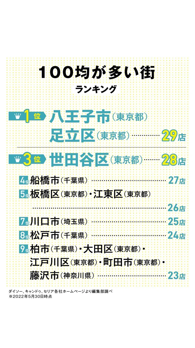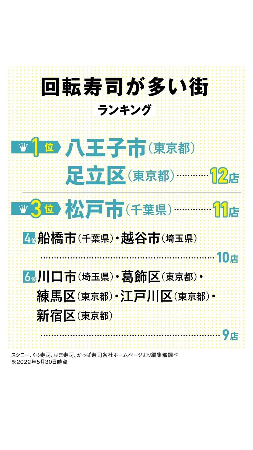 首都圏で「回転寿司が多い街ランキング」に「100均が多い街ランキング」…。