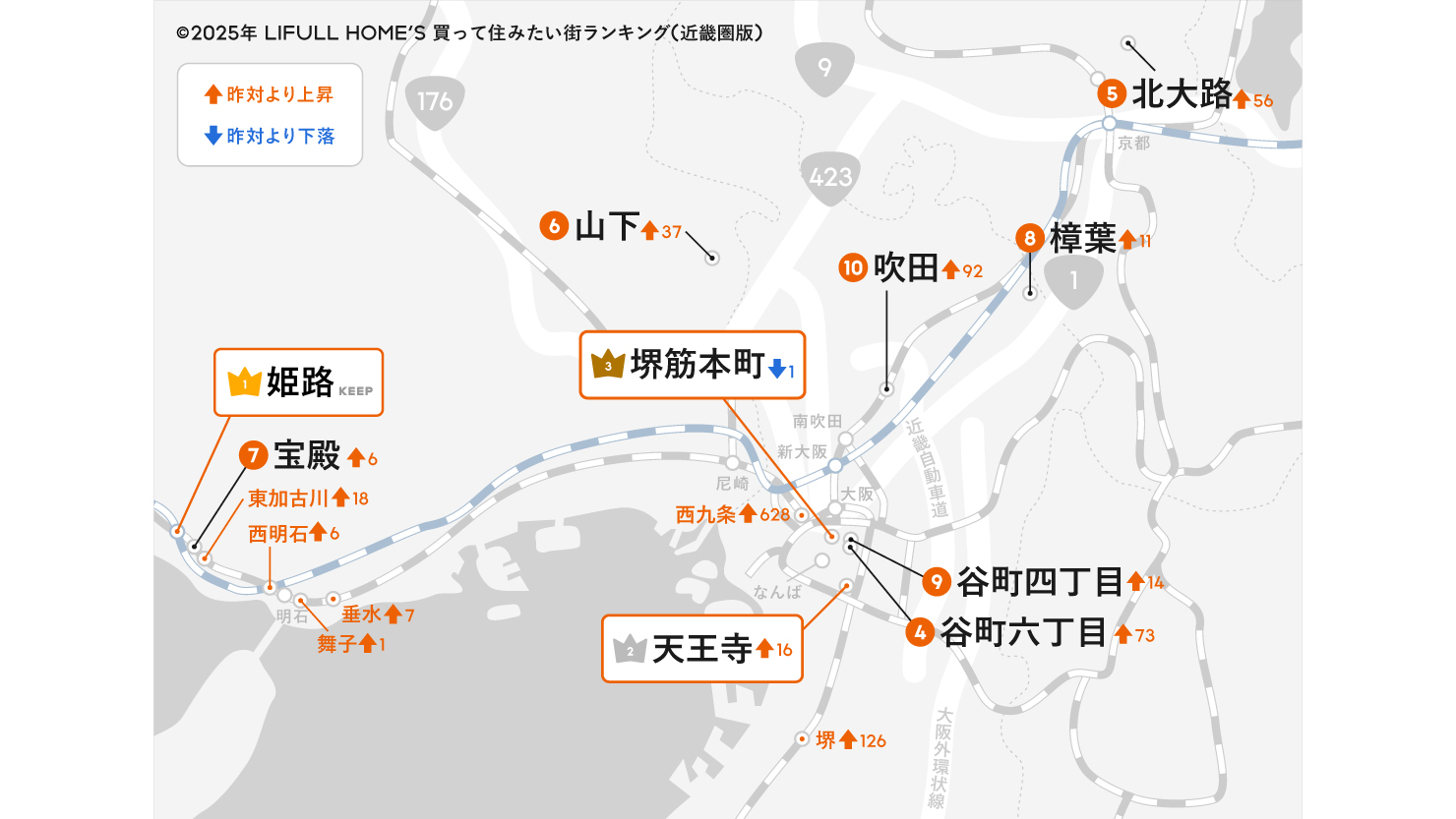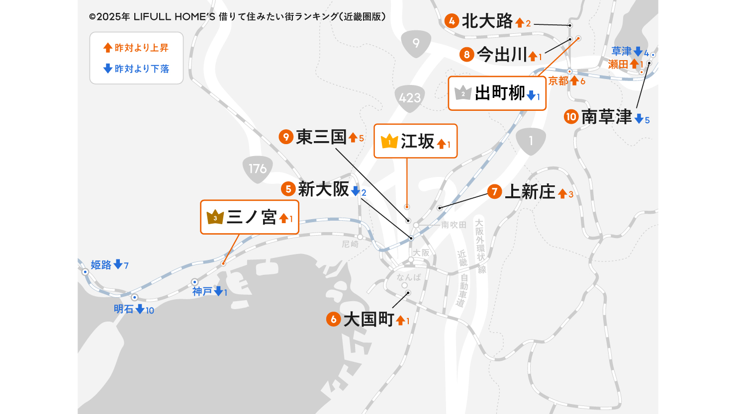 「江坂」「出町柳」「三ノ宮」の“3強”がトップ争い、2025年は「江坂」に軍配