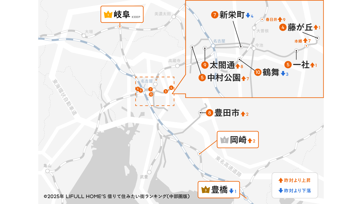 借りて住みたい街ランキング2025【中部圏版】