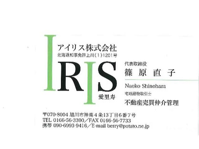 アイリス株式会社は北海道旭川市神楽四条13丁目6番7号に店舗があり、最寄りの駅はJR富良野線 神楽岡駅 徒歩5分のところです。営業時間は09:00~17:30(事前にご連絡いただければ対応致します)で、定休日は不定休となっています。
