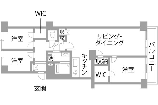 | 専有面積 | 80㎡ | 間取り | 3LDK→1LDK |