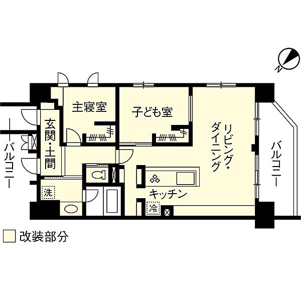 | 専有面積 | 74㎡ | 間取り | 3LDK→2LDK |