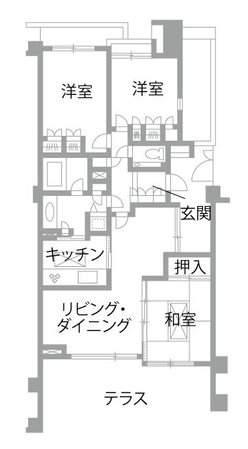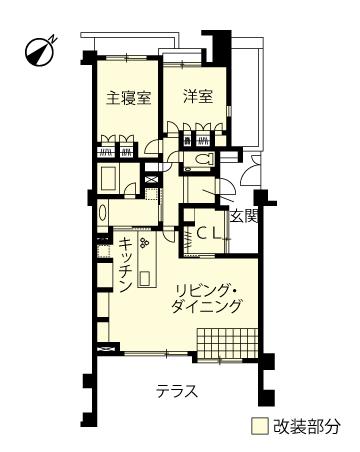 | 専有面積 | 75㎡ | 間取り | 3LDK→2LDK |
