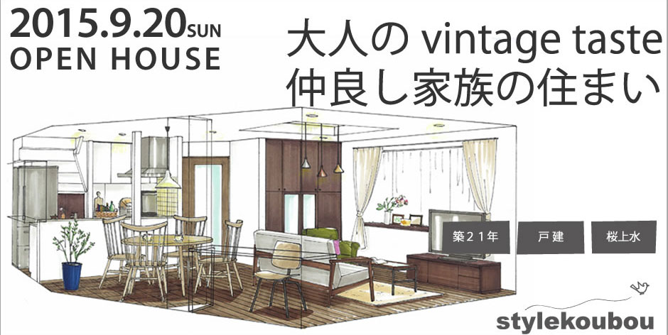 世田谷区桜上水にある築21年・20坪の戸建住宅のリノベーション。状態の良い部分を生かしながら、ビンテージテイストの素材感を大切にした住まいが完成しました。