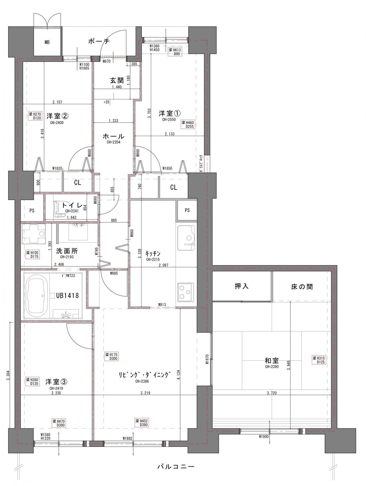 | 専有面積 | 95㎡ | 間取り | 4LDK以上→3LDK |