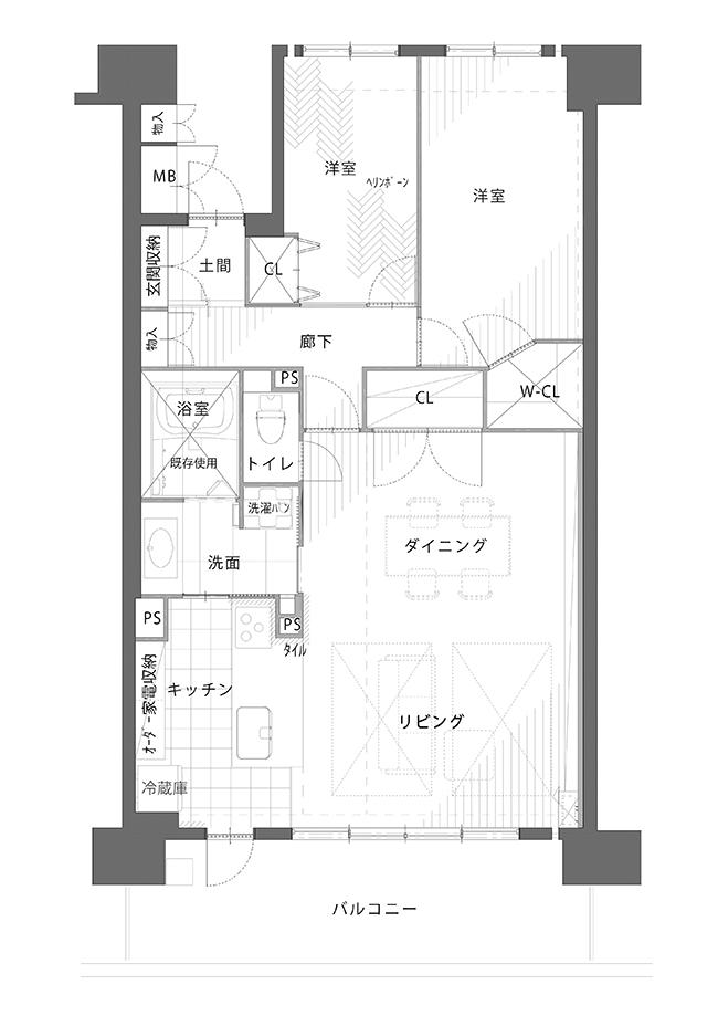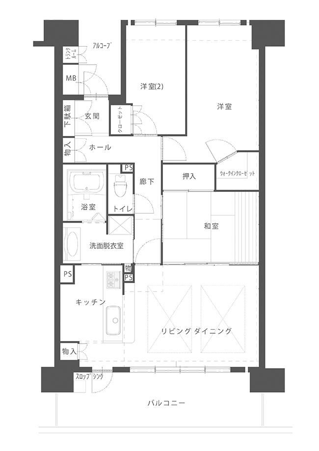 | 専有面積 | 65㎡ | 間取り | 3LDK→2LDK |