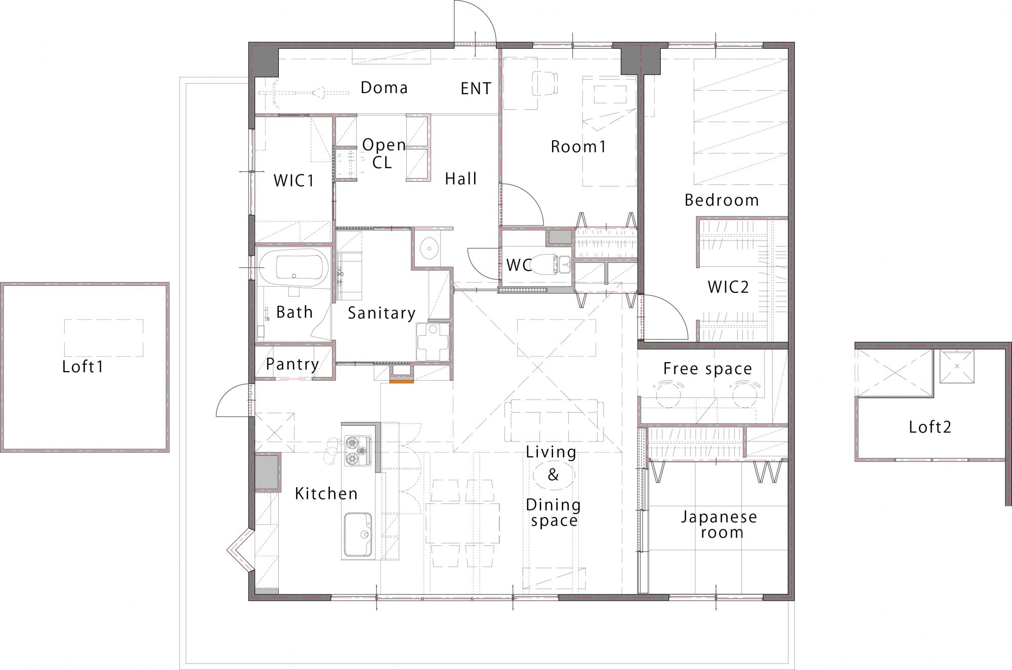 「タテのひろがりヨコのつながり」のリビングダイニング