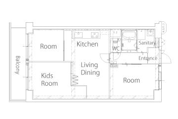 | 専有面積 | 66㎡ | 間取り | 3LDK→2LDK |