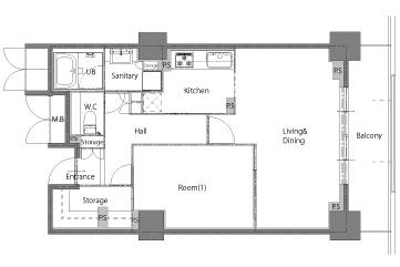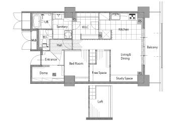| 専有面積 | 60.56㎡ | 間取り | 1LDK→2LDK |