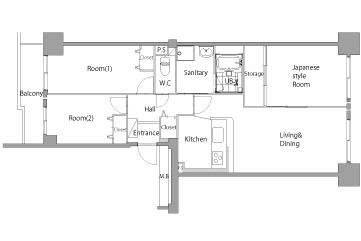 | 専有面積 | 67㎡ | 間取り | 3LDK→1LDK |