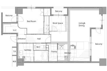 | 専有面積 | 77.04㎡ | 間取り | 3LDK→2LDK |