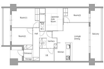 | 専有面積 | 92.85㎡ | 間取り | 4LDK以上→2LDK |