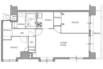 | 専有面積 | 61.84㎡ | 間取り | 2LDK→2LDK |