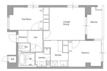 | 専有面積 | 56.31㎡ | 間取り | 2LDK→1LDK |