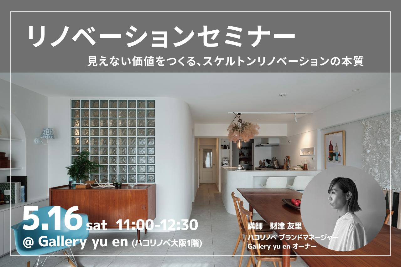 ハコリノベのブランドマネージャーが解説するリノベーションセミナー。 今回のテーマは「スケルトンリノベーション」です。 セミナー後はハコリノベ大阪の店舗見学ツアーも!細部までこだわった新店舗をぜひご覧ください。
