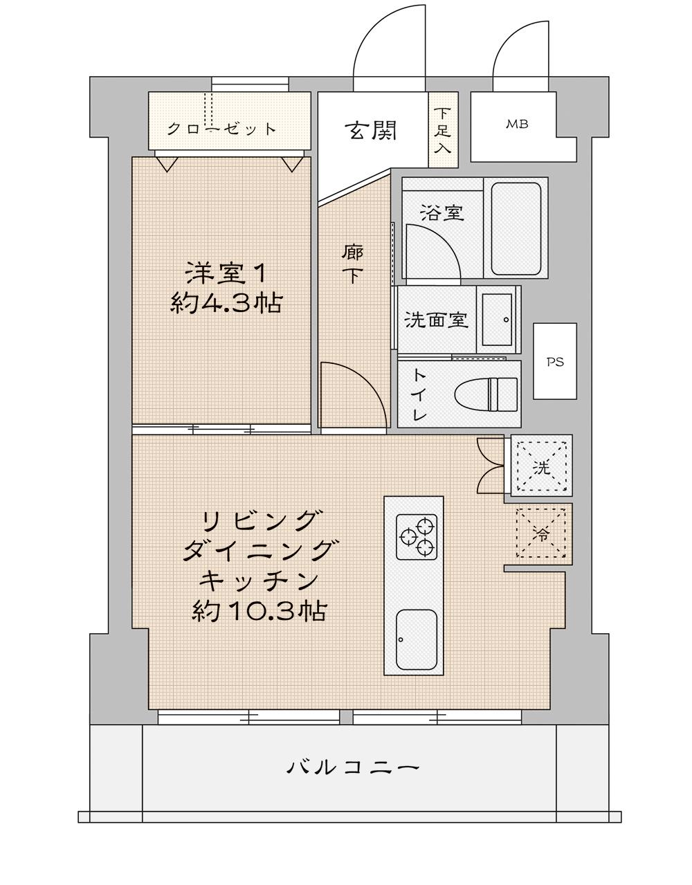 | 専有面積 | 38.88㎡ | 間取り | 2DK→1LDK |