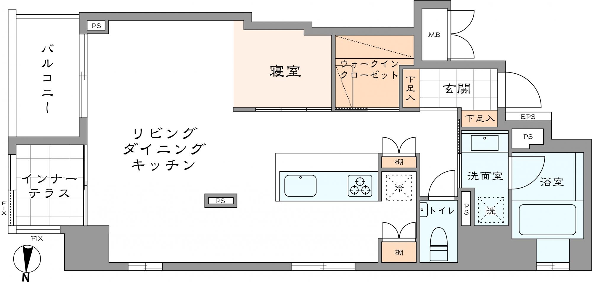 | 専有面積 | 54.18㎡ | 間取り | 2LDK→1LDK |