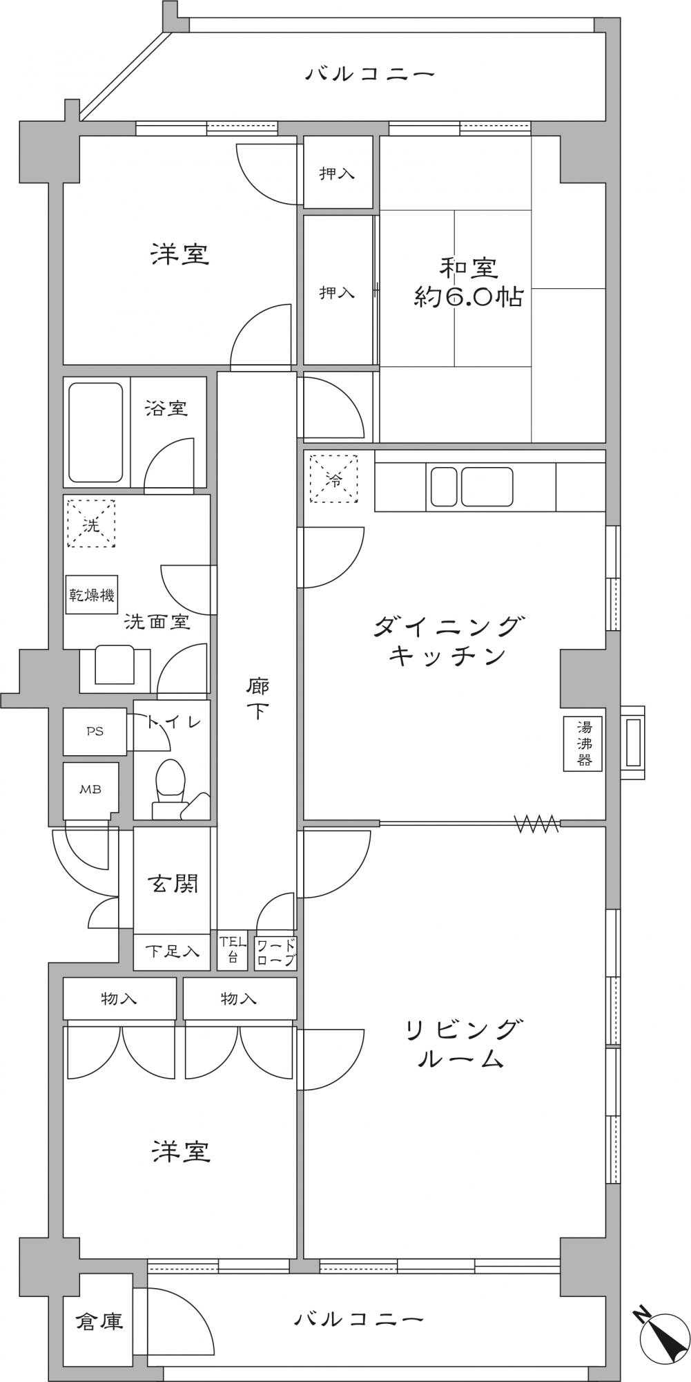 | 専有面積 | 83.39㎡ | 間取り | 3LDK→1LDK |
