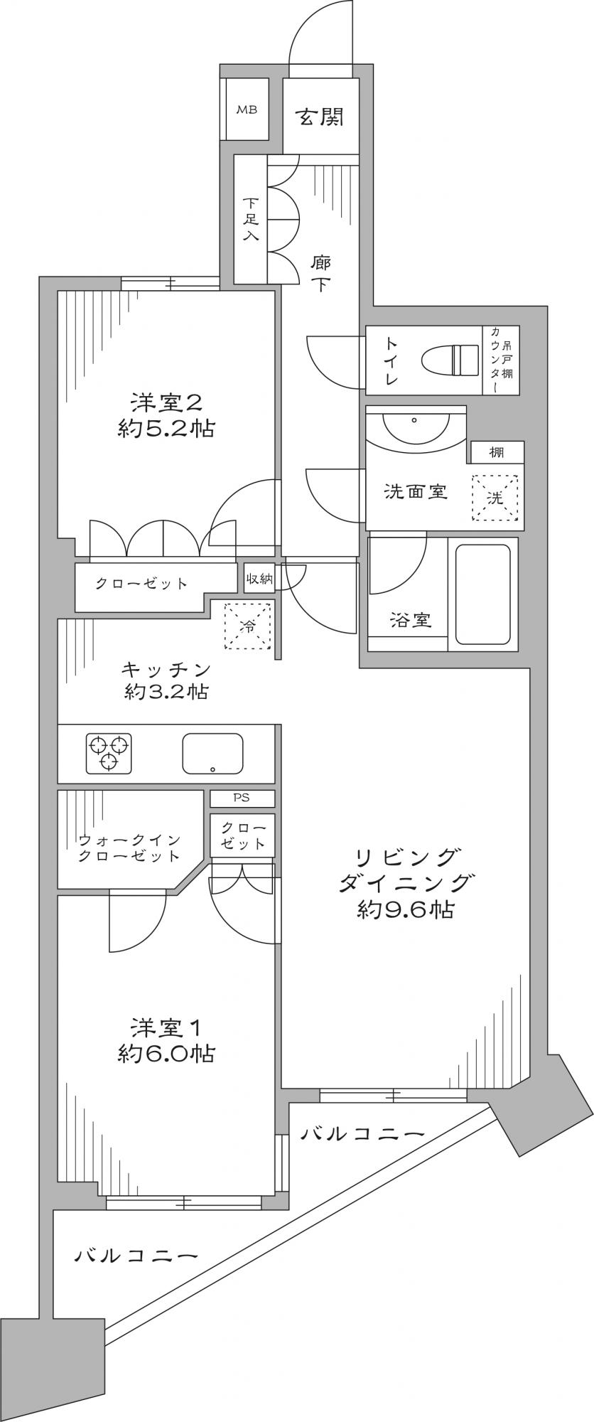 | 専有面積 | 59.02㎡ | 間取り | 2LDK→2LDK |