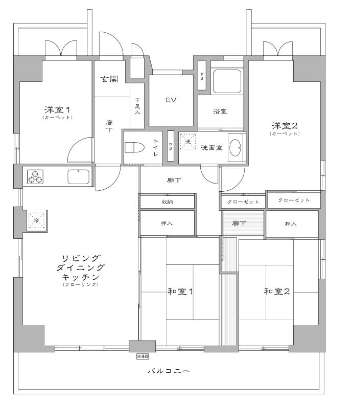 | 専有面積 | 91.68㎡ | 間取り | 4LDK以上→2LDK |