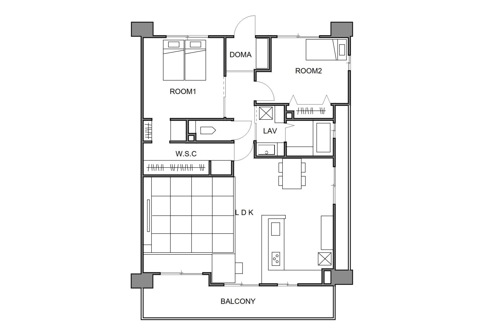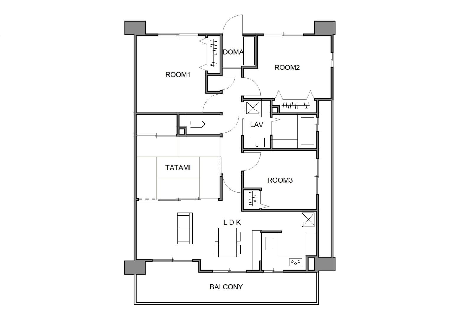 | 専有面積 | 80㎡ | 間取り | 4LDK以上→2LDK |