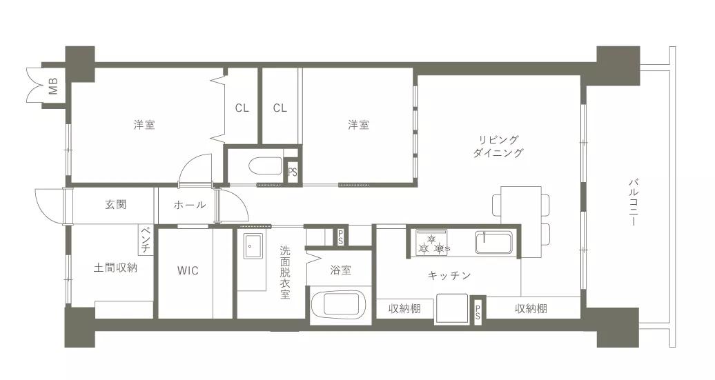 築22年の中古マンションを購入し、大好きな趣味を思う存分楽しめるようにリノベーションした施工事例。 玄関土間を広く計画し、キャンプやスノーボードなどのアウトドア用品をまとめて収納できるスペースを設けました。屋外で使って汚れが気になるアイテムもそのまま土間に置くことができ、掃除もしやすいのでいつでも清