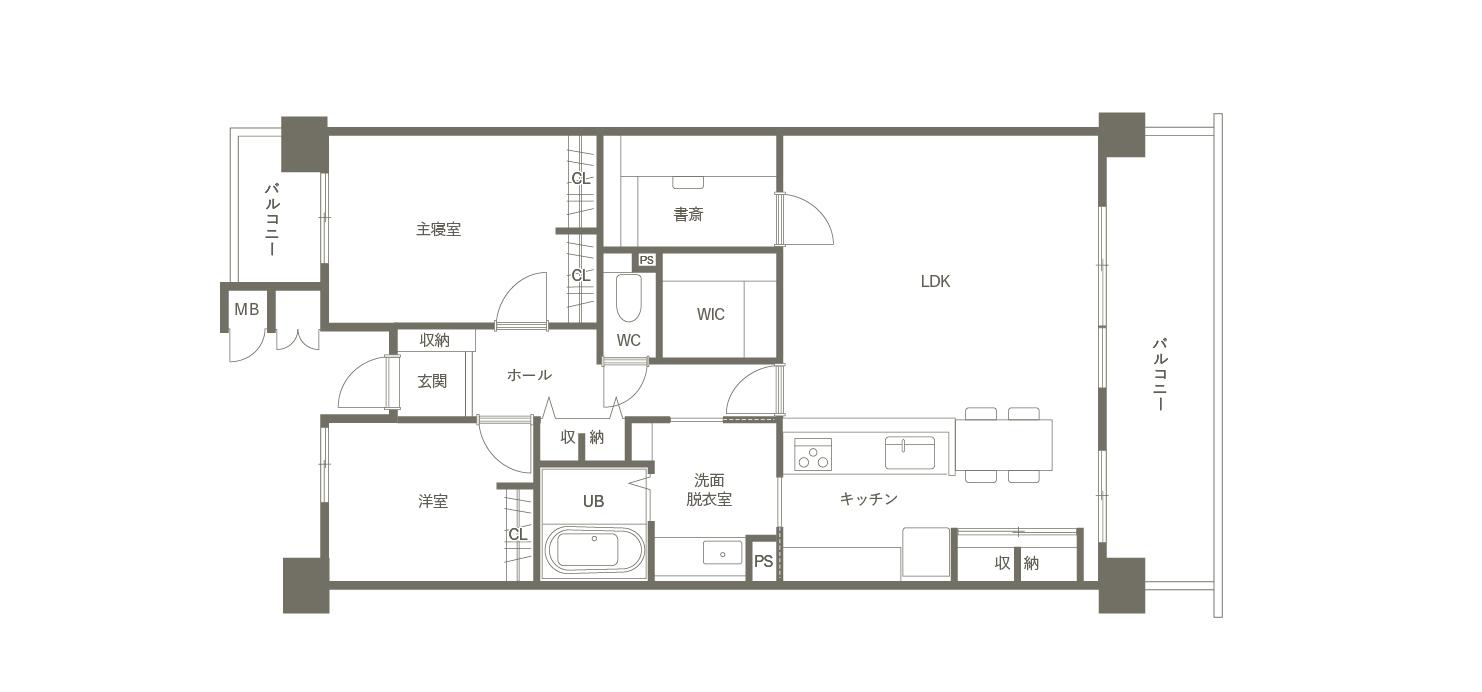 キッチンをダイニングと横並びに変更することで、配膳や片付けをスムーズにできる家事楽を実現。