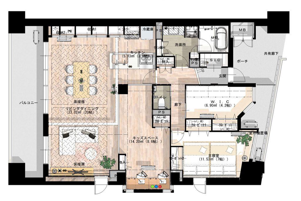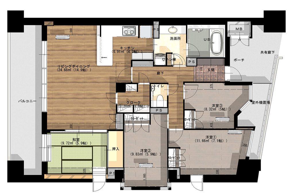 | 専有面積 | 98.3㎡ | 間取り | 4LDK以上→2LDK |