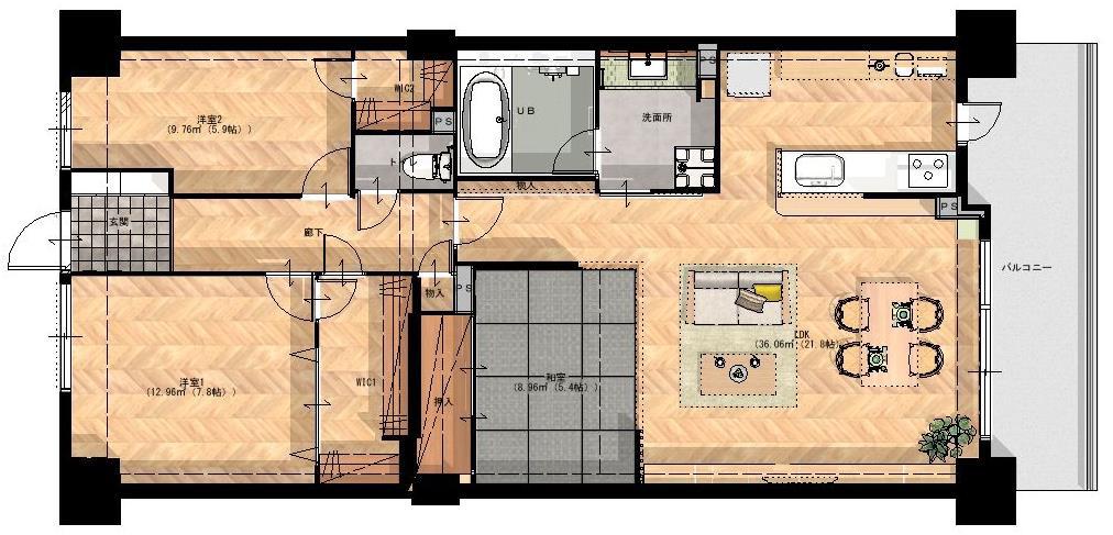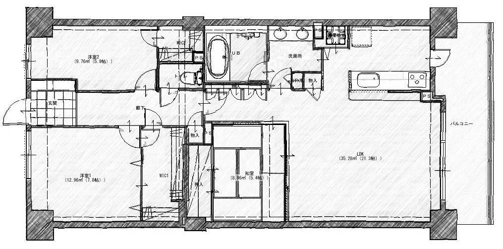 | 専有面積 | 97㎡ | 間取り | 3LDK→3LDK |