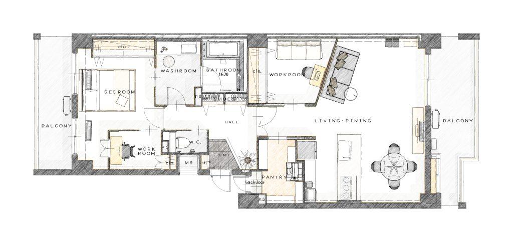 | 専有面積 | 82㎡ | 間取り | 3LDK→2LDK |