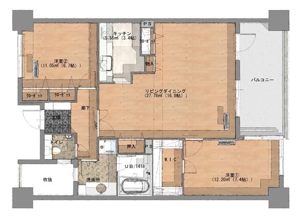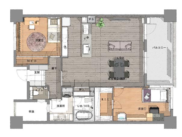 | 専有面積 | 83㎡ | 間取り | 2LDK→2LDK |