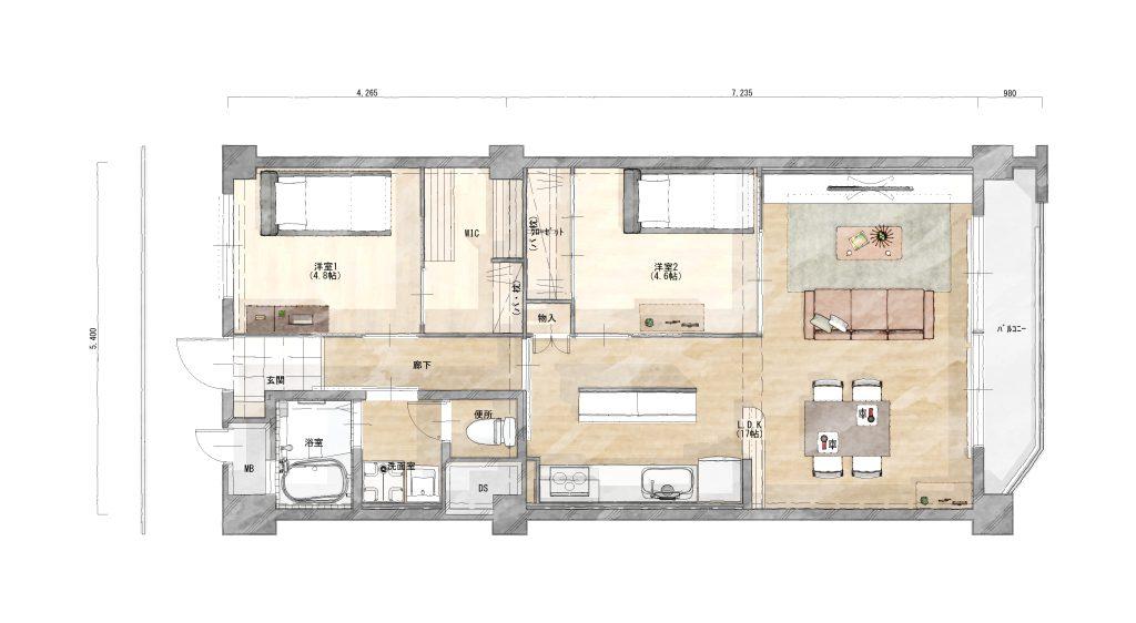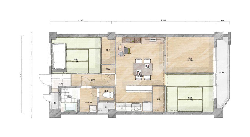 | 専有面積 | 62㎡ | 間取り | 3LDK→2LDK |