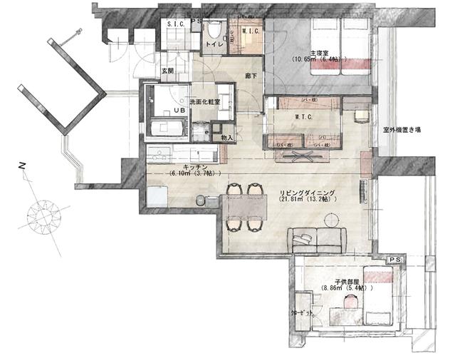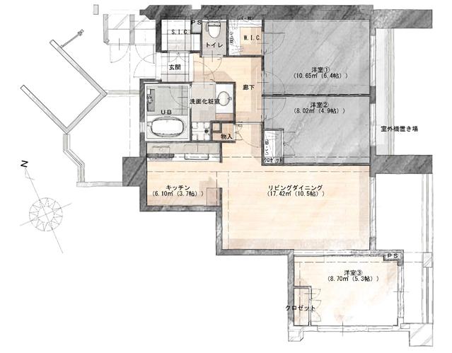 | 専有面積 | 70㎡ | 間取り | 3LDK→2LDK |