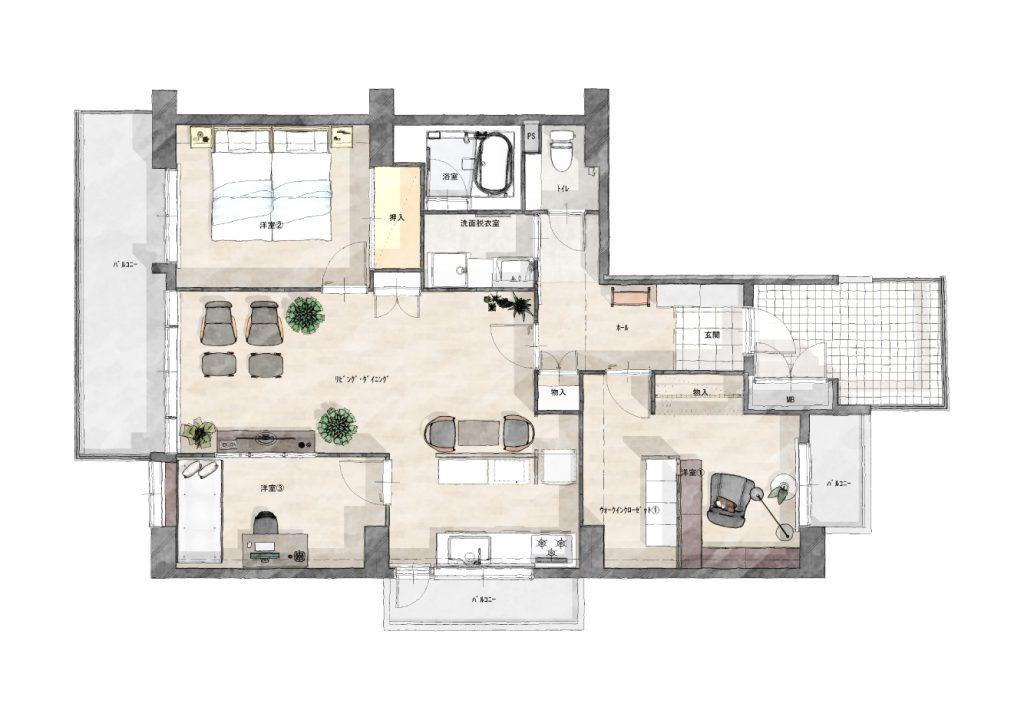 | 専有面積 | 80㎡ | 間取り | 3LDK→3LDK |