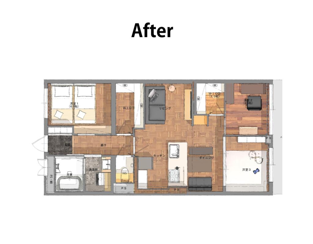 | 専有面積 | 60㎡ | 間取り | 3LDK→3LDK |