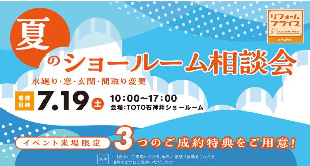 TOTO石神井ショールームを会場にリフォーム相談会を開催いたします。