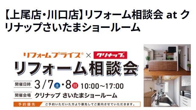 クリナップさいたまショールームを会場に、リフォーム相談会を開催いいたします。 クリナップの最新人気設備をご覧いただきながら、自分の家の相談もできるお得な相談会です。ぜひ足をお運びください。