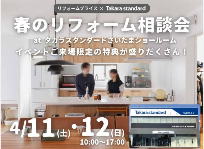タカラスダンダードさいたまショールームを会場にリフォーム相談会を開催いたします。 日常の暮らしに直結しているキッチンやシステムバスなどの水廻り空間。 長く使っているうちにあちこち気になる症状が出てきていたり、より省エネで安全に使いたいとリフォームを考え始めた方にピッタリの相談会です。