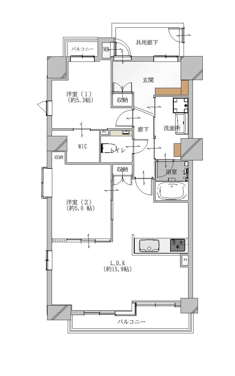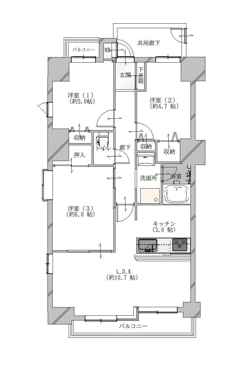 | 専有面積 | 64.59㎡ | 間取り | 3LDK→2LDK |