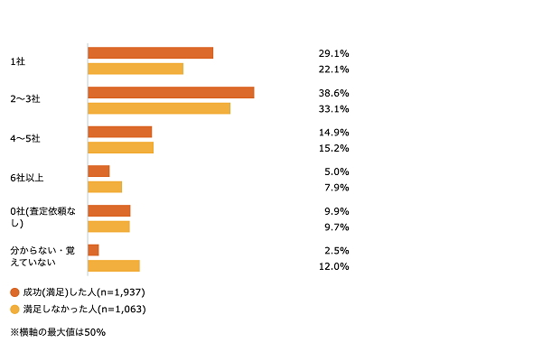 なお、4〜5社に依頼した人も14.9%と一定数いるため、これらの結果を踏まえて、3〜5社に絞って査定を依頼すると良いでしょう。