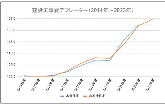 グラフを見ると、2020年度以降から急激に建設工事費が上昇していることが分かります。