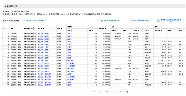 実際にあった取引事例がエリアごとに表示されるため、所有する土地と類似しているケースを見つけて比較検討することができます。実際に売る場合は相場に見合う売出し価格を設定しなければ早めに売却できないことからも、不動産の時価を知るのに適している方法といえます。