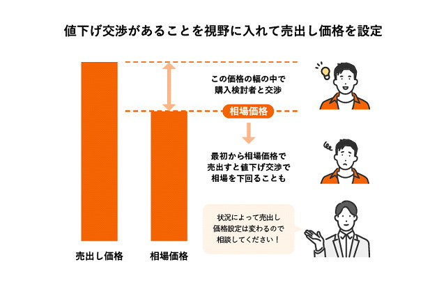 ただし、売り出し価格を相場より安く設定しすぎても損失が発生しやすくなるため、適正な相場を把握したうえで価格設定することが重要です。
