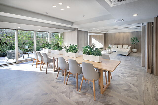 大規模マンションならゲストルームやパーティールームなどゲストを招く際に便利なスペースや、キッズルームや託児所など子育てが充実した施設、フィットネスジムやプールなど健康面をサポートする施設など共用施設の充実が魅力。24時間有人管理や防犯カメラなどセキュリティも安心。