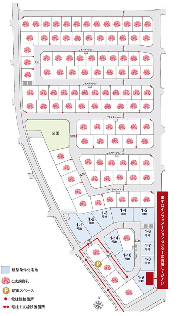 | 建物面積 | - | 土地面積 | 175.42m2(1-6号地)~329.17m2(1-1号地) 全て私道負担なし |